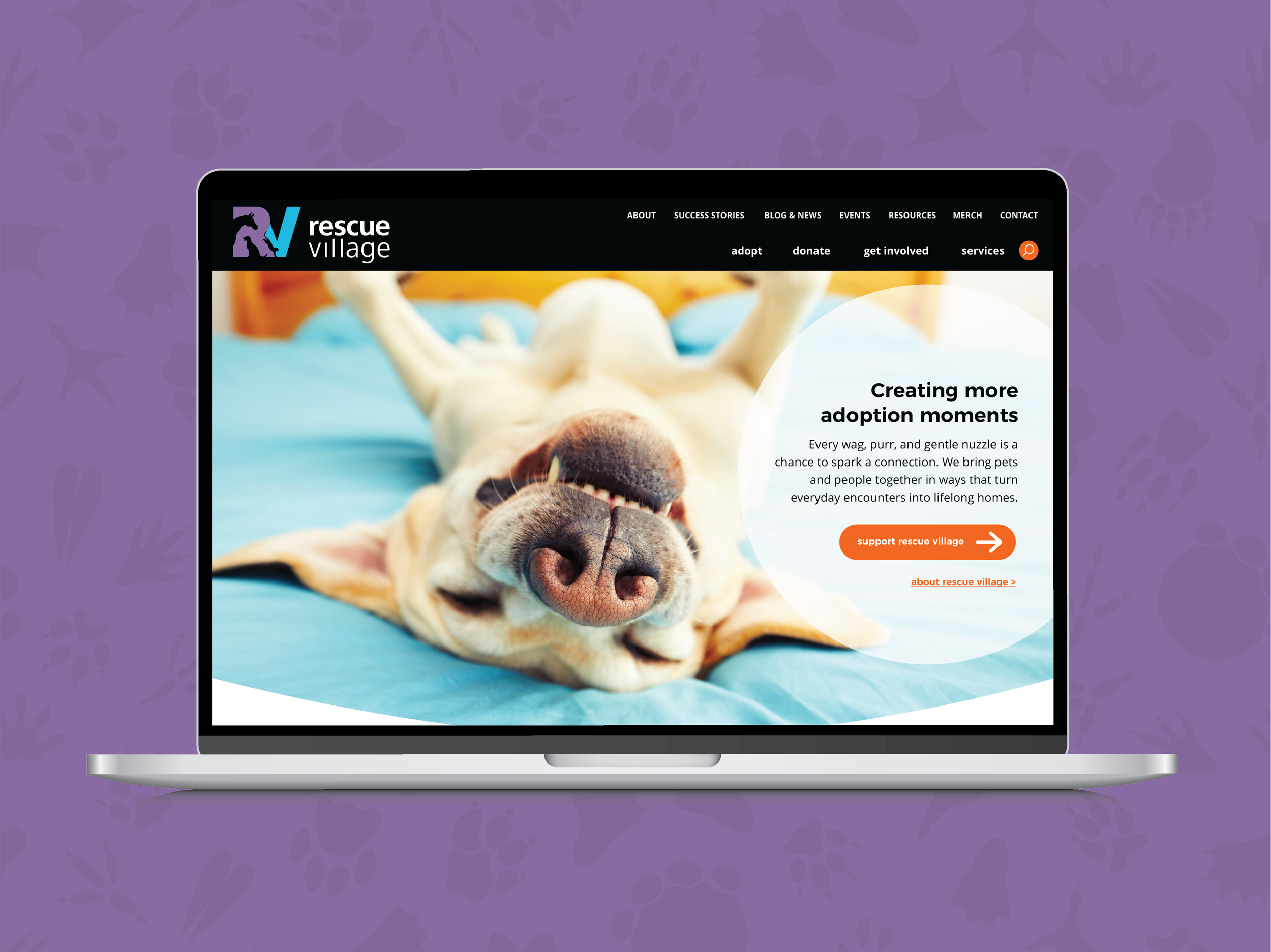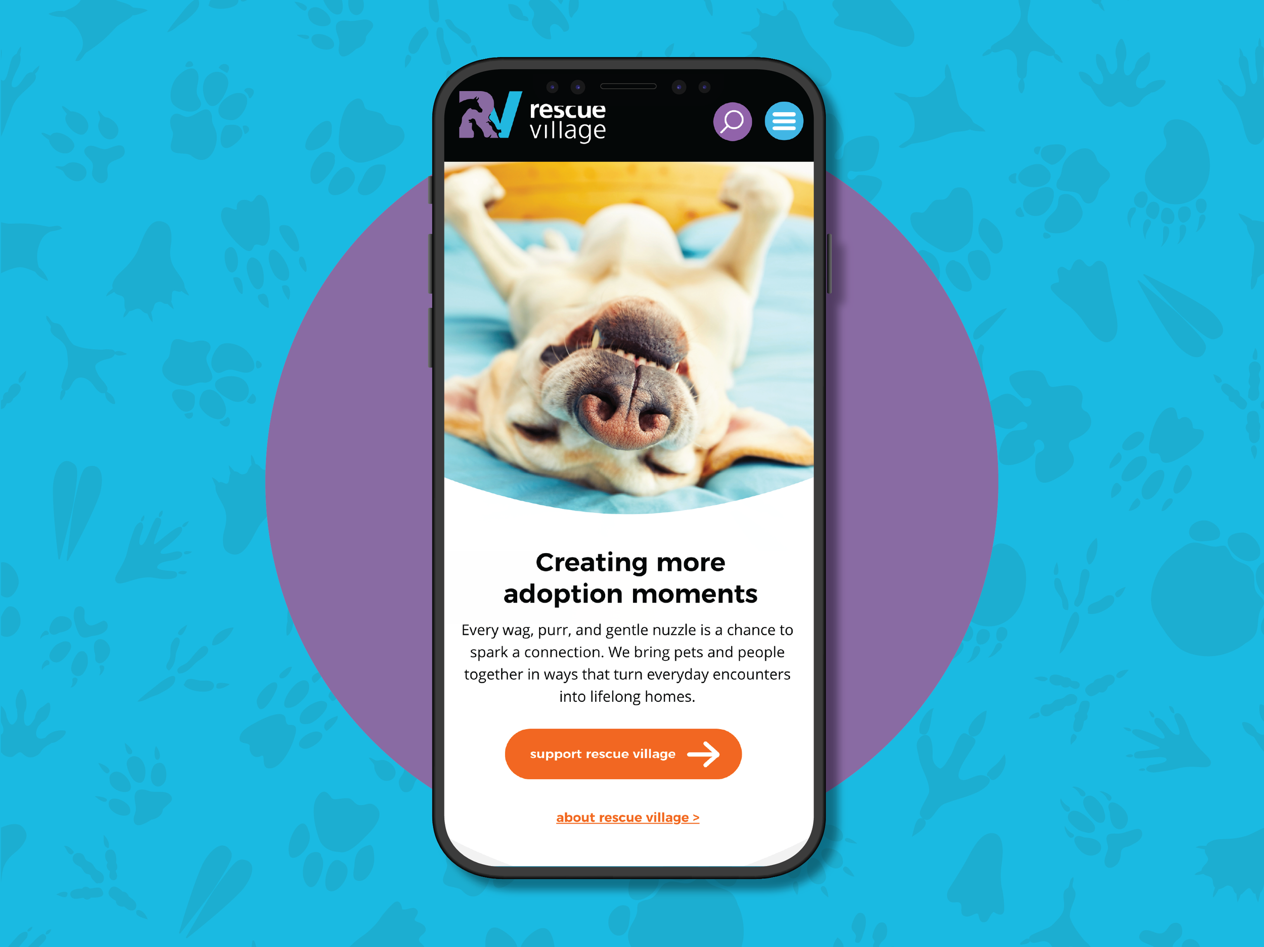 Rescue Village is a animal shelter in Cleveland, Ohio. Their previous website was difficult to navigate and the design didn’t lend to their credibility and mission. I led the website redesign to create a more intuitive, heart-forward digital experience that reflects their mission and impact. Their branding including a lot of circles and a bright bold color palette that I brought into the design. The new site prioritizes adoptable pets, streamlines donations and volunteer sign-ups, and uses thoughtful storytelling to turn visitors into supporters—making it easier than ever to create more adoption moments.
